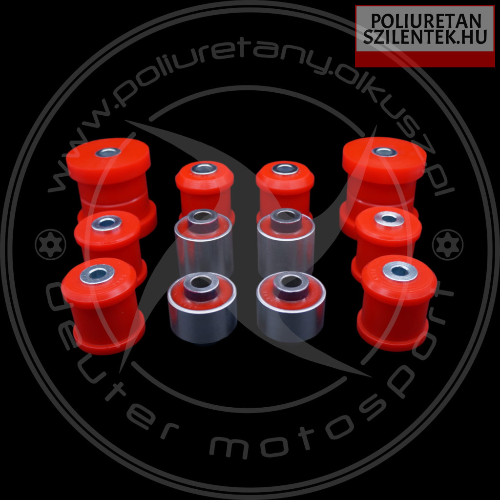Deuter hátsó futómű poliuretán szilent készlet, amely tartalmazza a hátsó alsó-felső keresztlengőkar szilenteket, a hosszlengőkar szilenteket és a csonkállvány szilenteket.