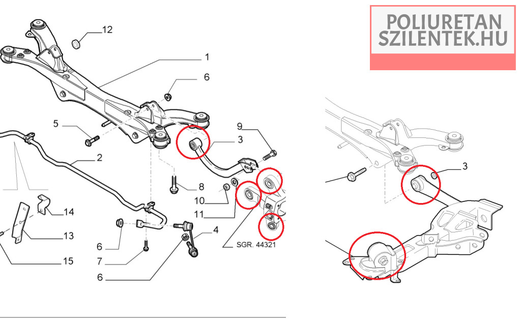 Ez a készlet a futómű bölcső szilenteket nem tartalmazza!